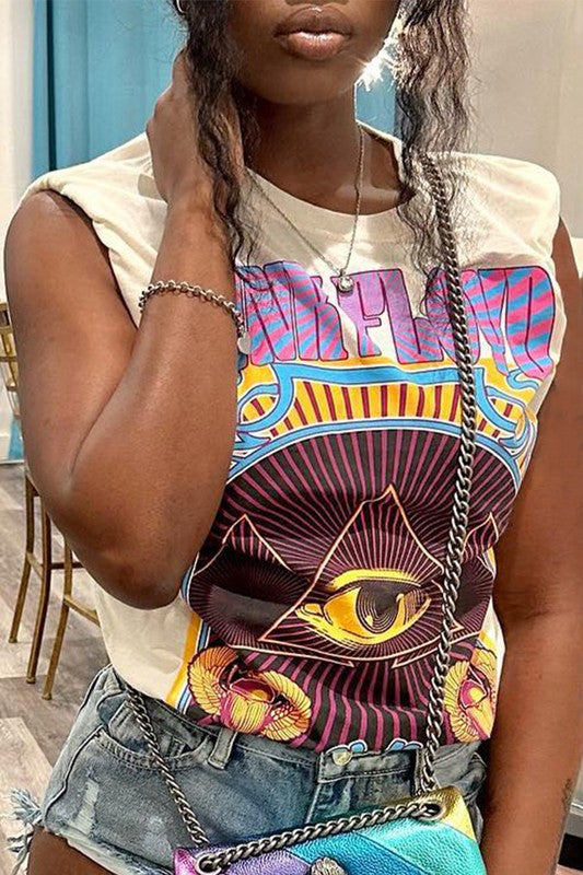 Introducing our soft and stylish Floyd Graphic T, made from high-stretch cotton for ultimate comfort. Its sleeveless design adds a fashionable touch to any outfit. Perfect for those looking for both style and practicality in their wardrobe.